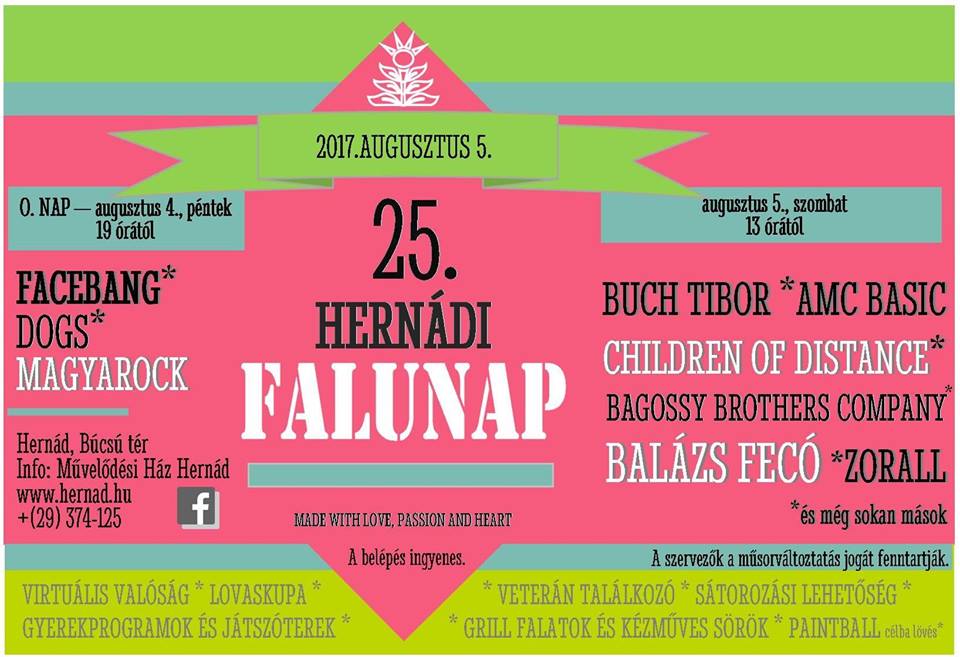 1993-ban – bár reméltük – nem lehettünk biztosak abban, hogy egyszer ez a nap is eljön. A 25. hernádi falunap minden eddiginél gazdagabb programot kínál a látogatóknak!