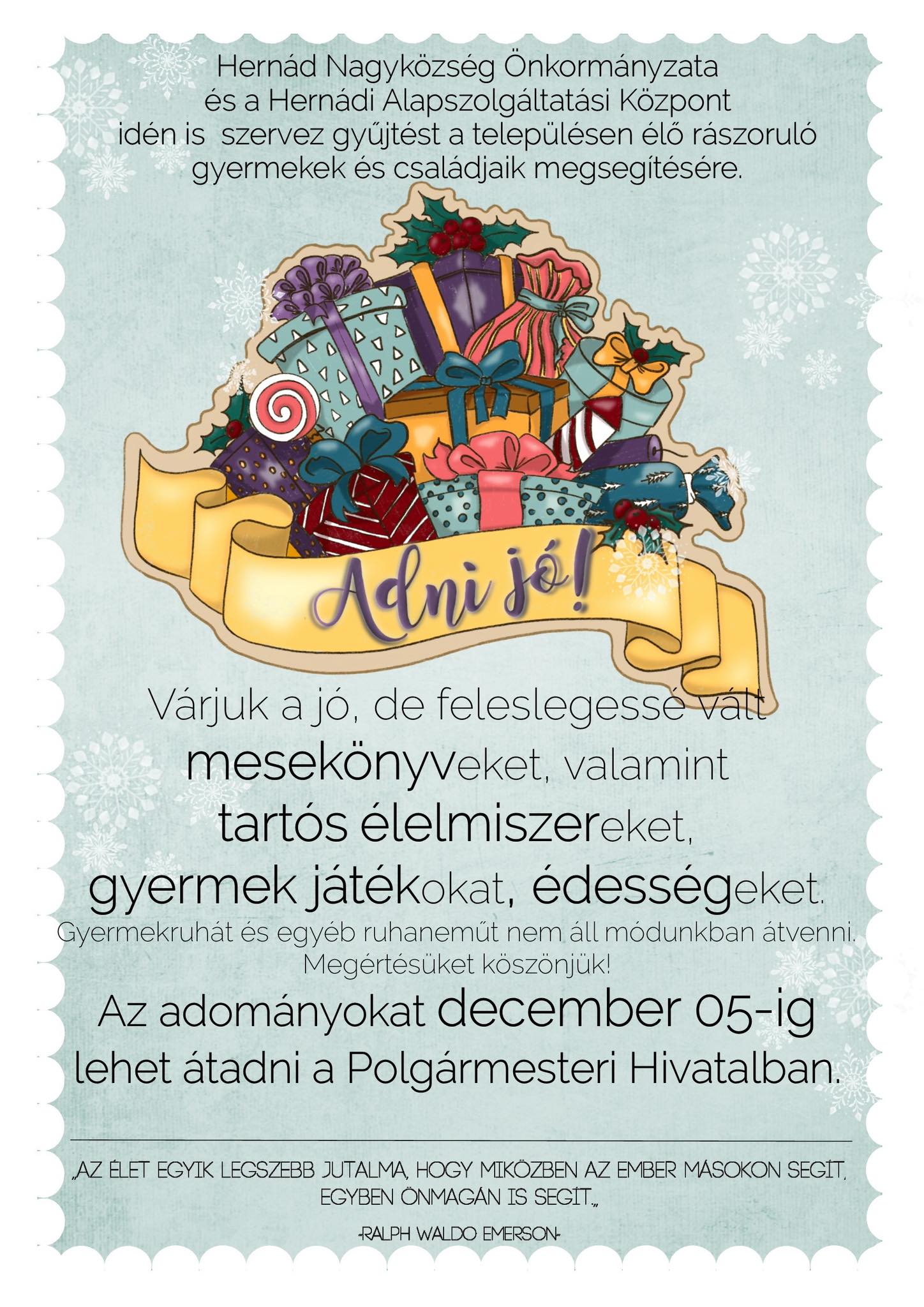 BypamaKedves hernádiak! Bizonyára már mindannyian értesültek arról, hogy december 24-ről december 25-re virradó éjszakára a Kormány felfüggesztette a kijárási tilalmat, valamint a magánrendezvények, családi összejövetelek 10 fős létszámkorlátjába a 14 év alatti gyermekek nem számítanak bele. Örömmel tudatom, hogy a Népegészségügyi Osztálytól kapott határozatok szerint Hernádon december 24-én éjfélre mindenkinek lejár a járványügyi megfigyelése. Kérem Önöket,…
