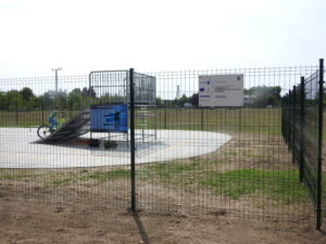 Az alapra 5 db elemet helyeztek el (rámpa, csúszódoboz, korlát, lépcsős piramis, negyedív). A fejlesztéshez tartozik egy, a használat szabályait leíró tábla.
