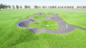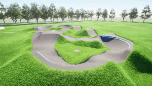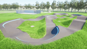 A pálya 116 méter hosszú, 306 m2 aszfaltozott felülettel. A pálya teljes alapterülete 781 m2. Köré fákat ültetünk. A létesítmény öntözőrendszerrel kerül kiépítésre, amely biztosítja, hogy mindig szép zöld legyen rajta a fű. A pálya a Búcsú téren, a ping-pong asztalok mögötti területen épül. A projekt teljes pályázati támogatásból és önkormányzati forrásból épül, teljes bekerülési költsége: 32.170.000 FT + ÁFA.