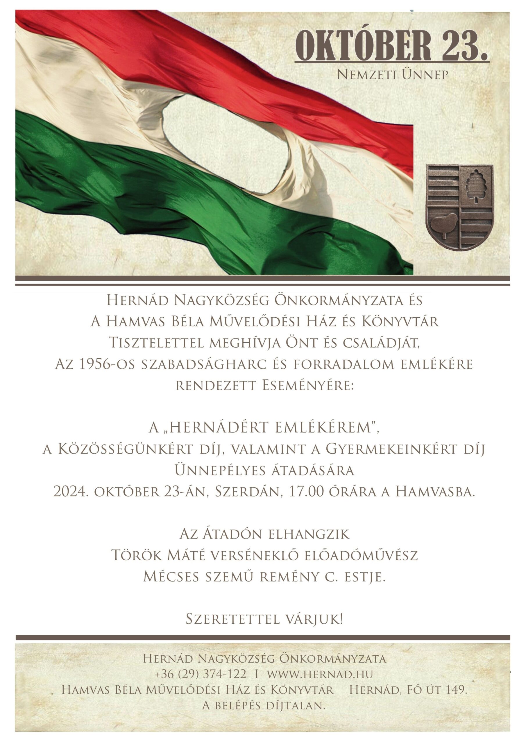 BystxTisztelt Ebtartók! Hernád Nagyközség Önkormányzata a 2023. április 17. és május 31. napja között ebösszeírást tart. Önkormányzatunk továbbra sem vezet be ebadót az ebösszeírás célja az állatok védelméről és kíméletéről szóló 1998. évi XXVIII. törvény előírásainak betartása, a településen tartott ebek nyilvántartása, valamint az esetleges járványok megelőzése. Az ebösszeírás során kérjük, hogy Hernád település közigazgatási…