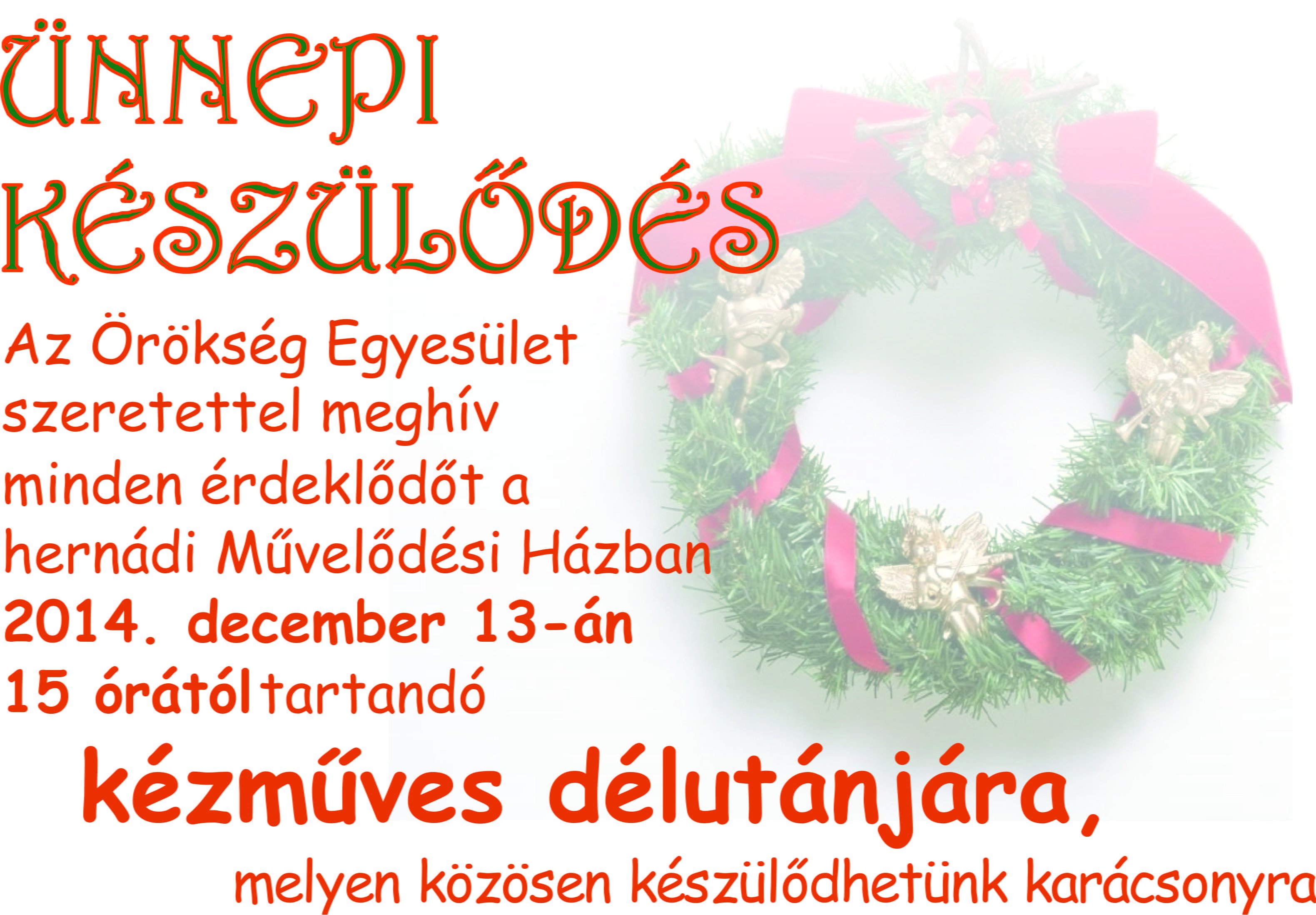 Az Örökség Egyesület és a Művelődési Ház szeretettel vár minden érdeklődőt hagyományos kézműves programjára, amelyre (mint mindig) a belépés most is díjtalan.