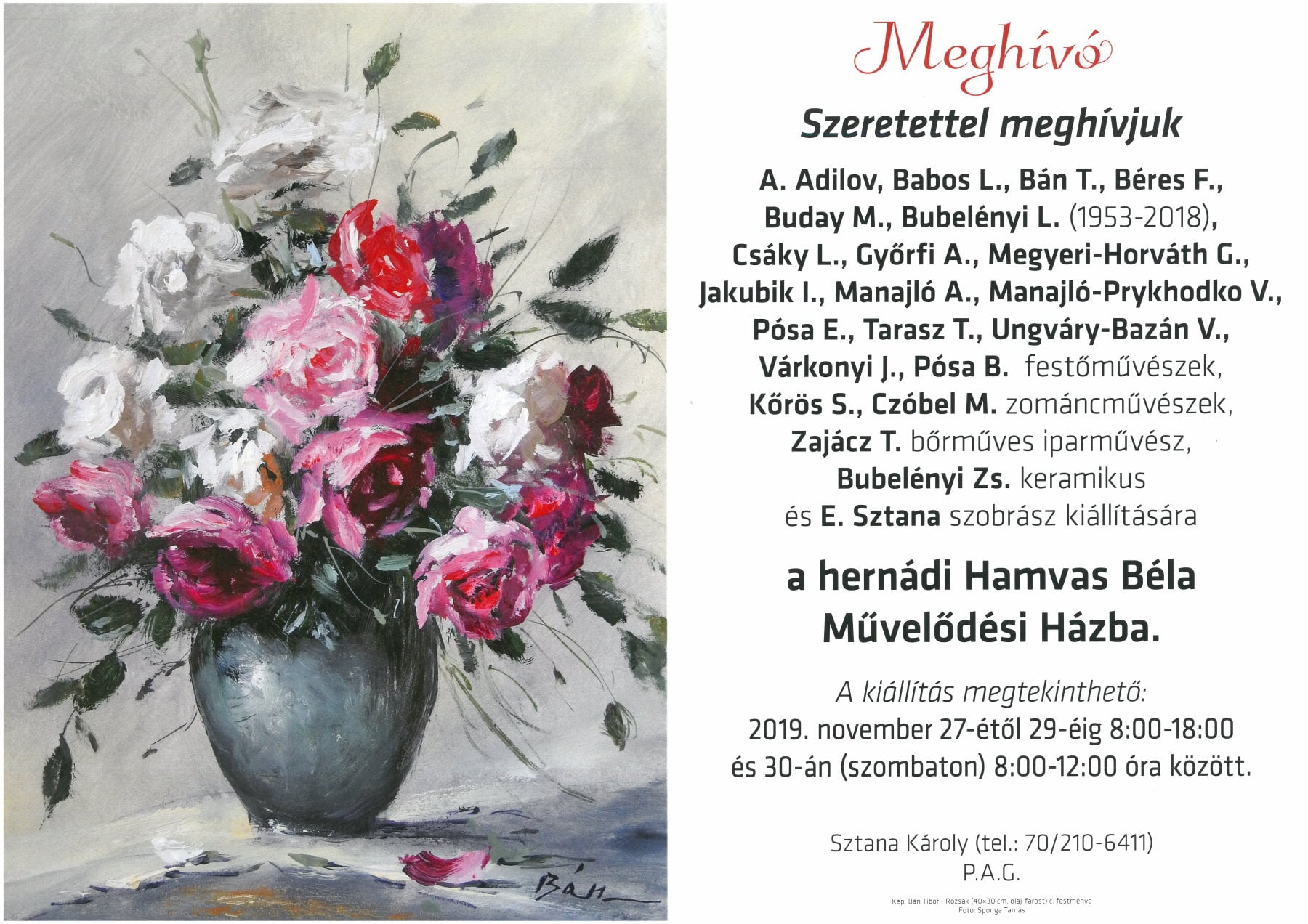 BypamaA „Hernádi Ősz 2014” következő programja Tarasz Tabaka önálló kiállításának megnyitója a Művelődési Házban, amelyre november 8-án kerül sor. A megnyitón közreműködik Tolcsvay Béla előadóművész-zeneszerző és Szabó Erika színművész.