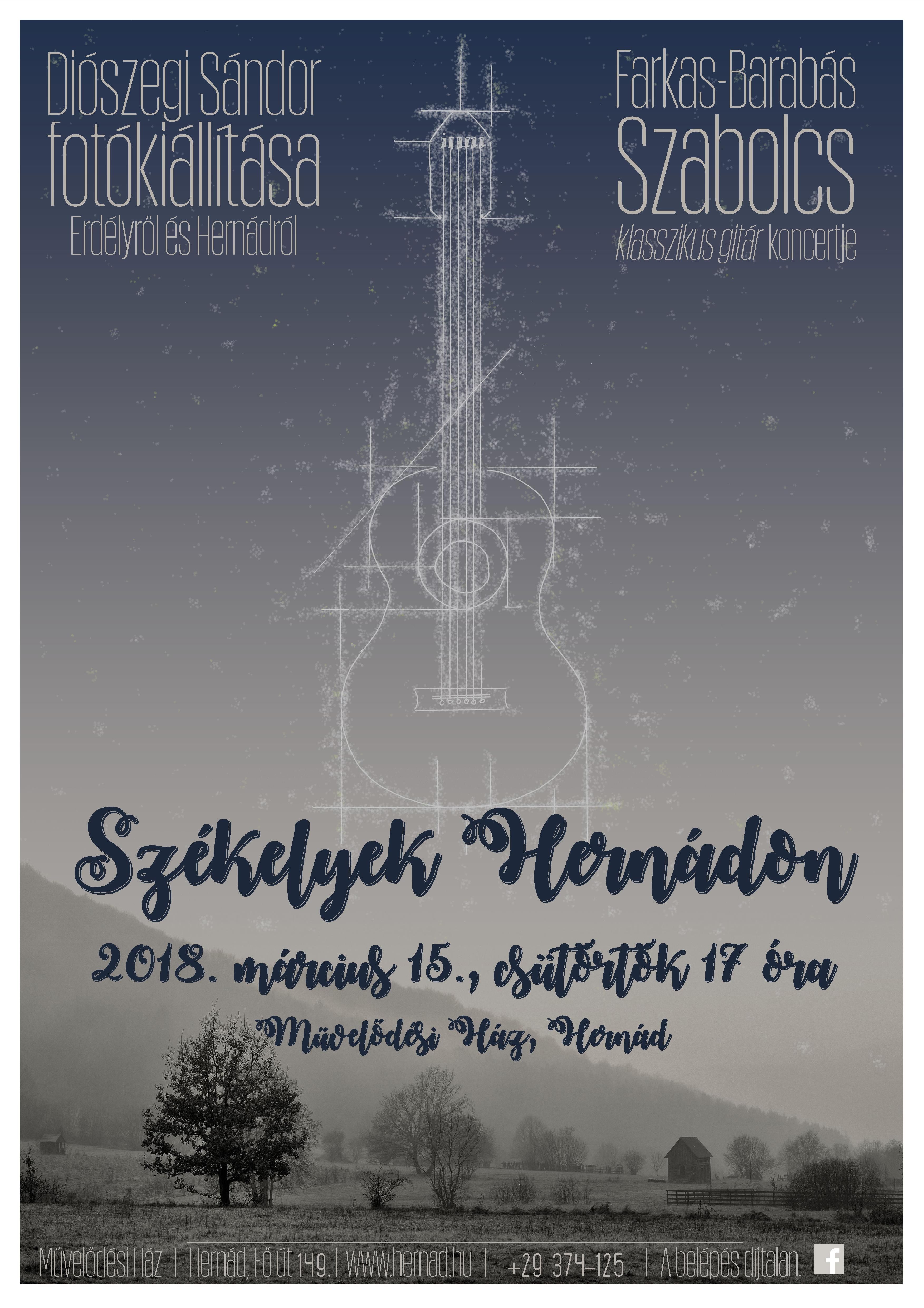 Olyan kiállításra invitáljuk olvasóinkat, amely egyben hangverseny is. Községünkben élő két tehetséges, székely legény közös alkotását csodálhatjuk és hallgathatjuk meg március 15-én. Tartsanak velünk március 15-én 17 órakor a művelődési házba Diószegi Sándor fotókiállításának megnyitójára és Farkas-Barabás Szabolcs gitárhangversenyére!