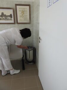 A háziorvosi és a gyermekorvosi rendelőkben, valamint a védőnőknél mind a betegváróban, mind a rendelőben van ilyen szerkezet, a fogorvosnál csak a rendelőben helyeztek el egyet, mert ott megoldható az, hogy ne tömegesen jelenjenek meg a betegek.
