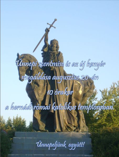 A hagyományokhoz híven a keresztény magyar állam megalapításáról községünk ünnepi szentmise keretében emlékezik meg a hernádi római katolikus templomban. Ünnepeljenek Önök is velünk!