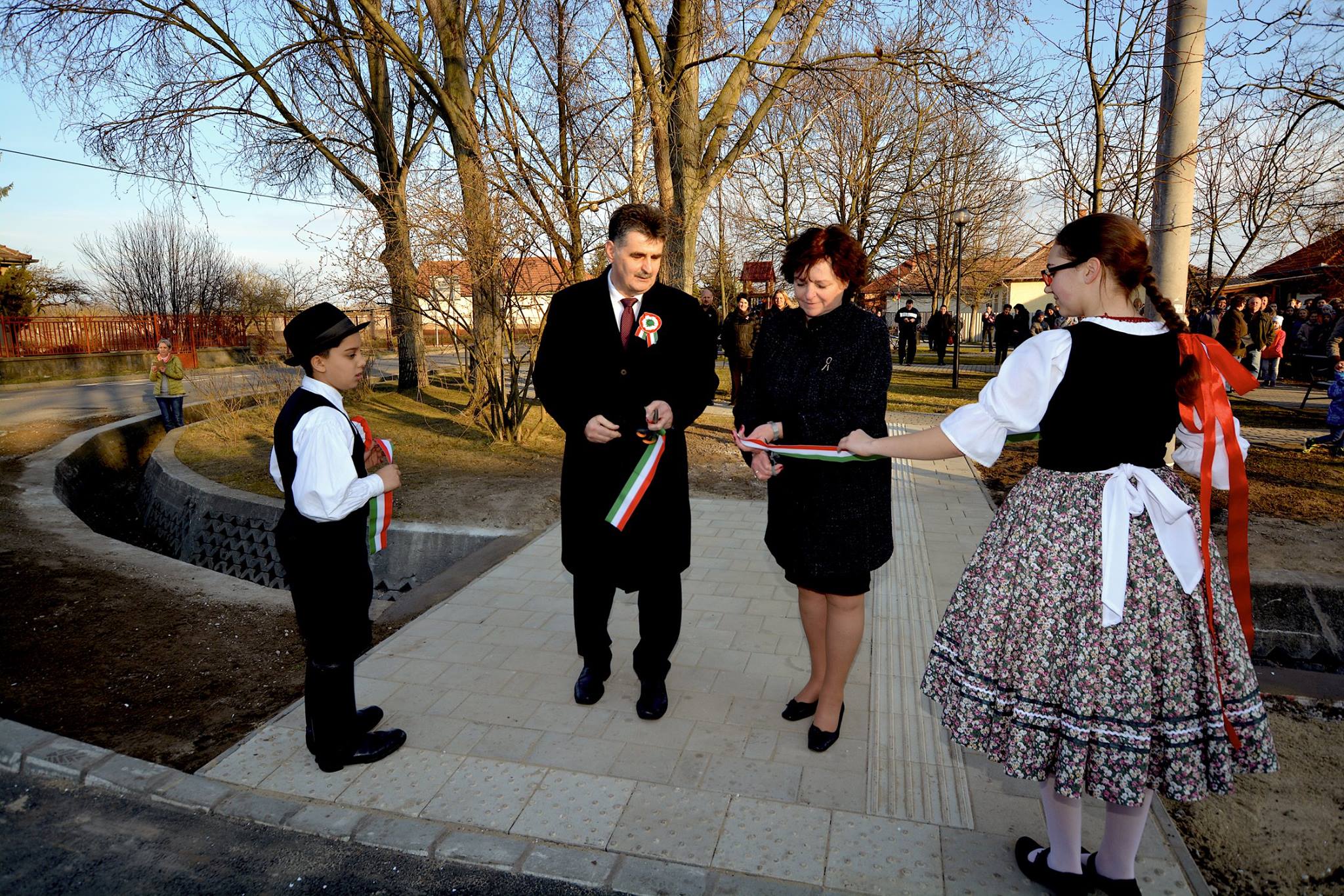 Az ünnepségen Pogácsás Tibor, a Belügyminisztérium önkormányzatokért felelős államtitkára mondott beszédet. A műsor után került sor az elkészült gyalogátkelőhely átadására. A Fő utca és a Köztársaság út sarkán létesült ez az új, forgalmat szabályozó létesítmény. Sokak kívánsága teljesült március 14-én. Azoké leginkább, akik sokszor kelnek át itt, a parknál az úton, s akik úgy érezték, hogy az autósok nem mindig figyelnek oda a gyalogosokra.
